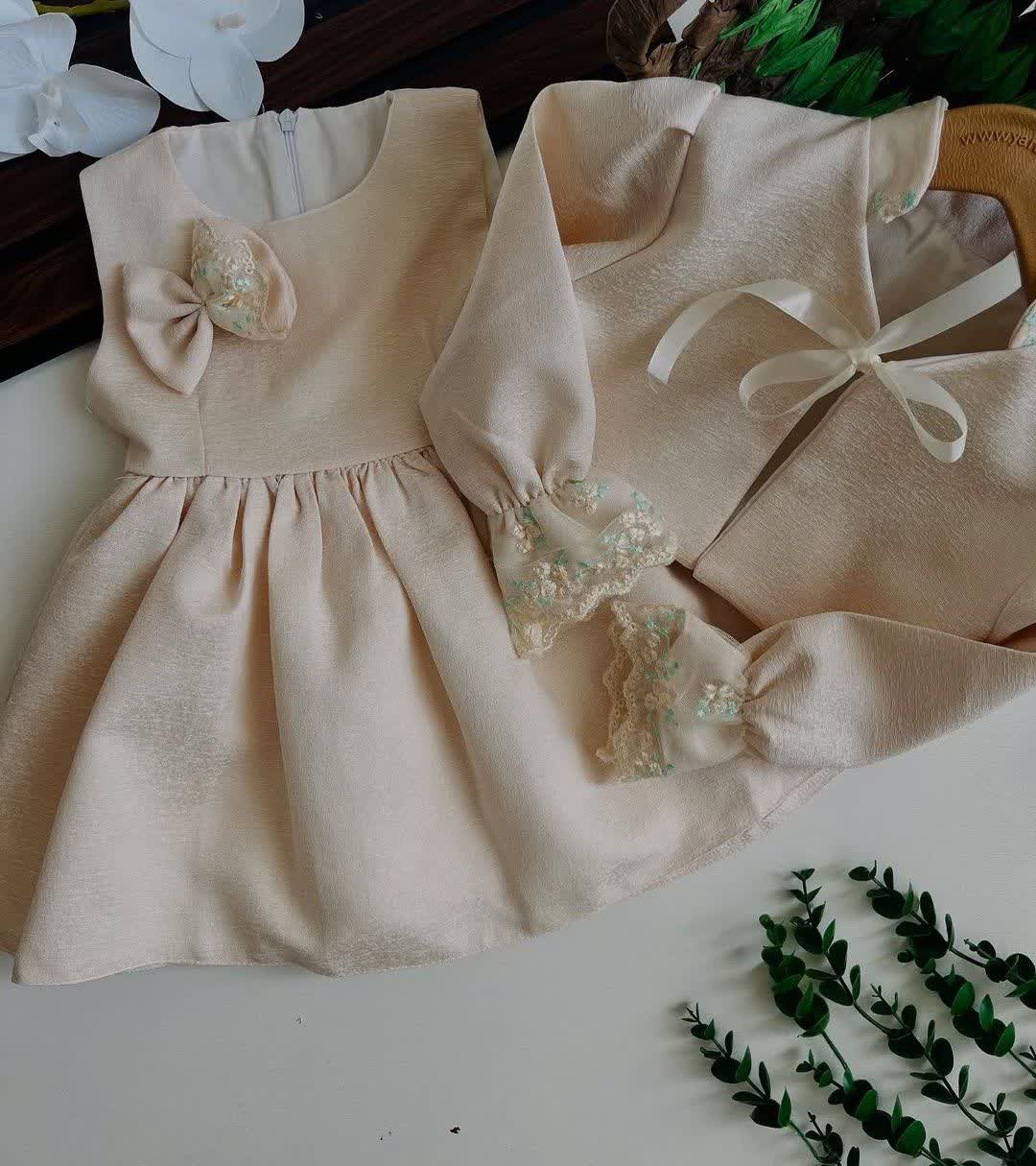 اندازه سایز 4: قد سارافن:60/ پهنا:31/ قد کت:27/ آستین کت 36