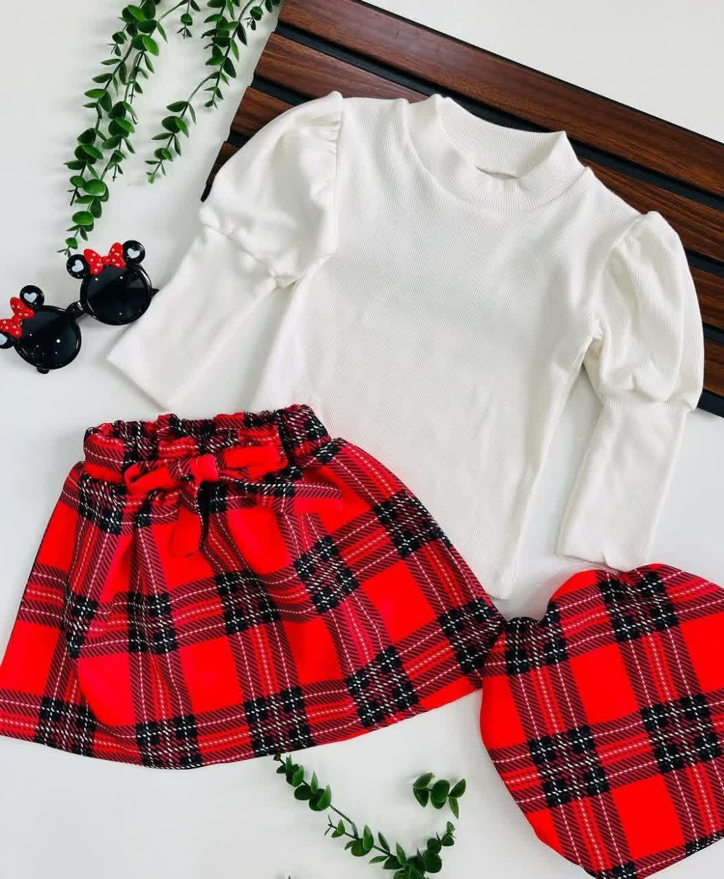شومیز دامن چهارخونه همراه با کلاه فرانسوی چهار خونه