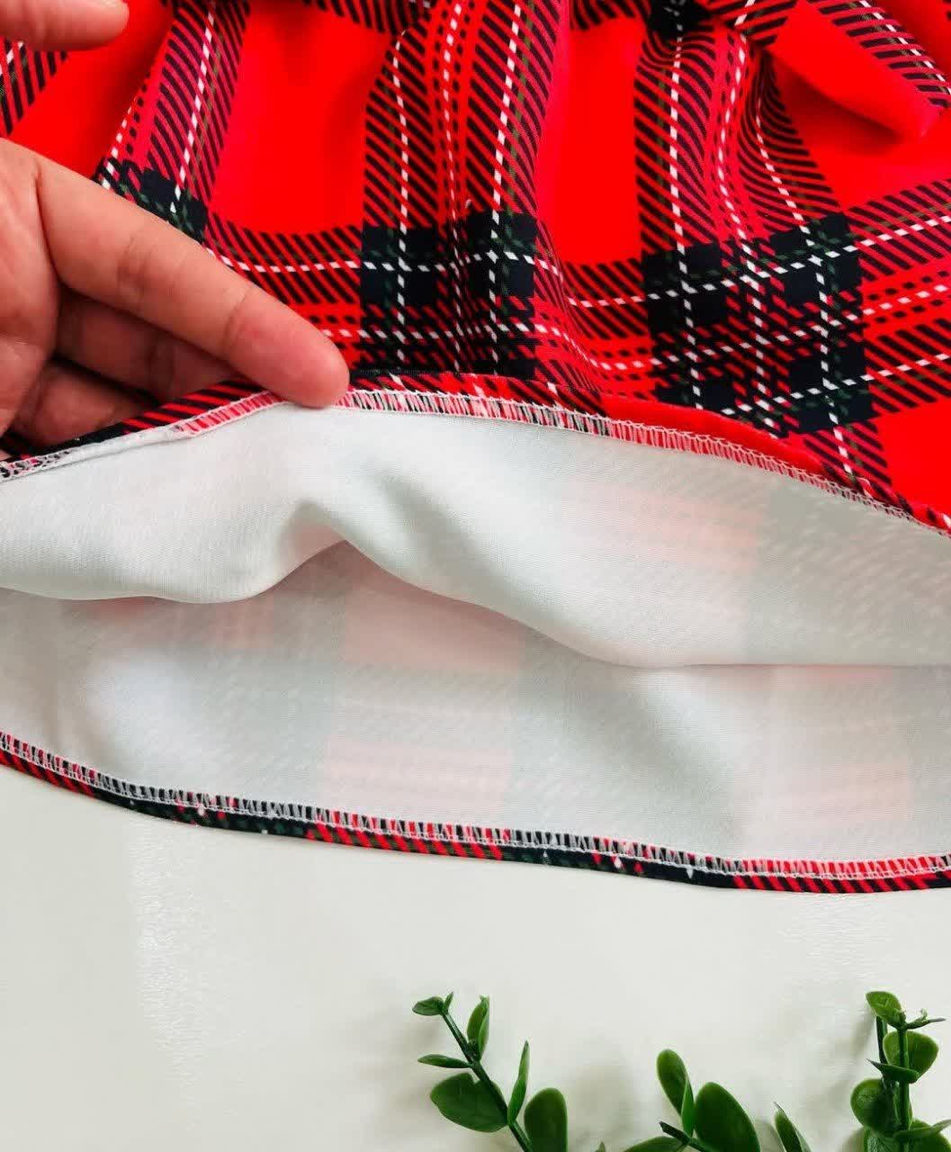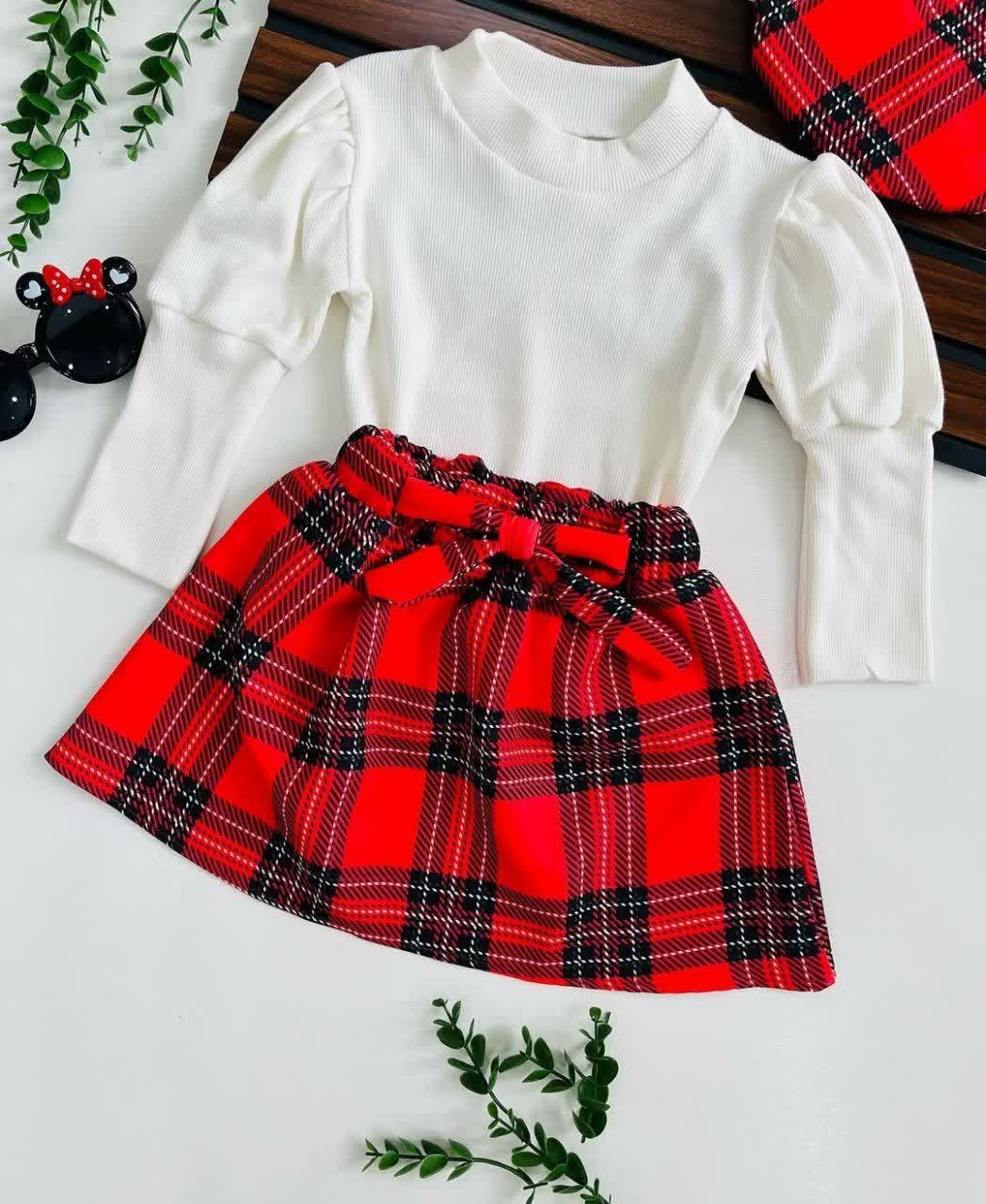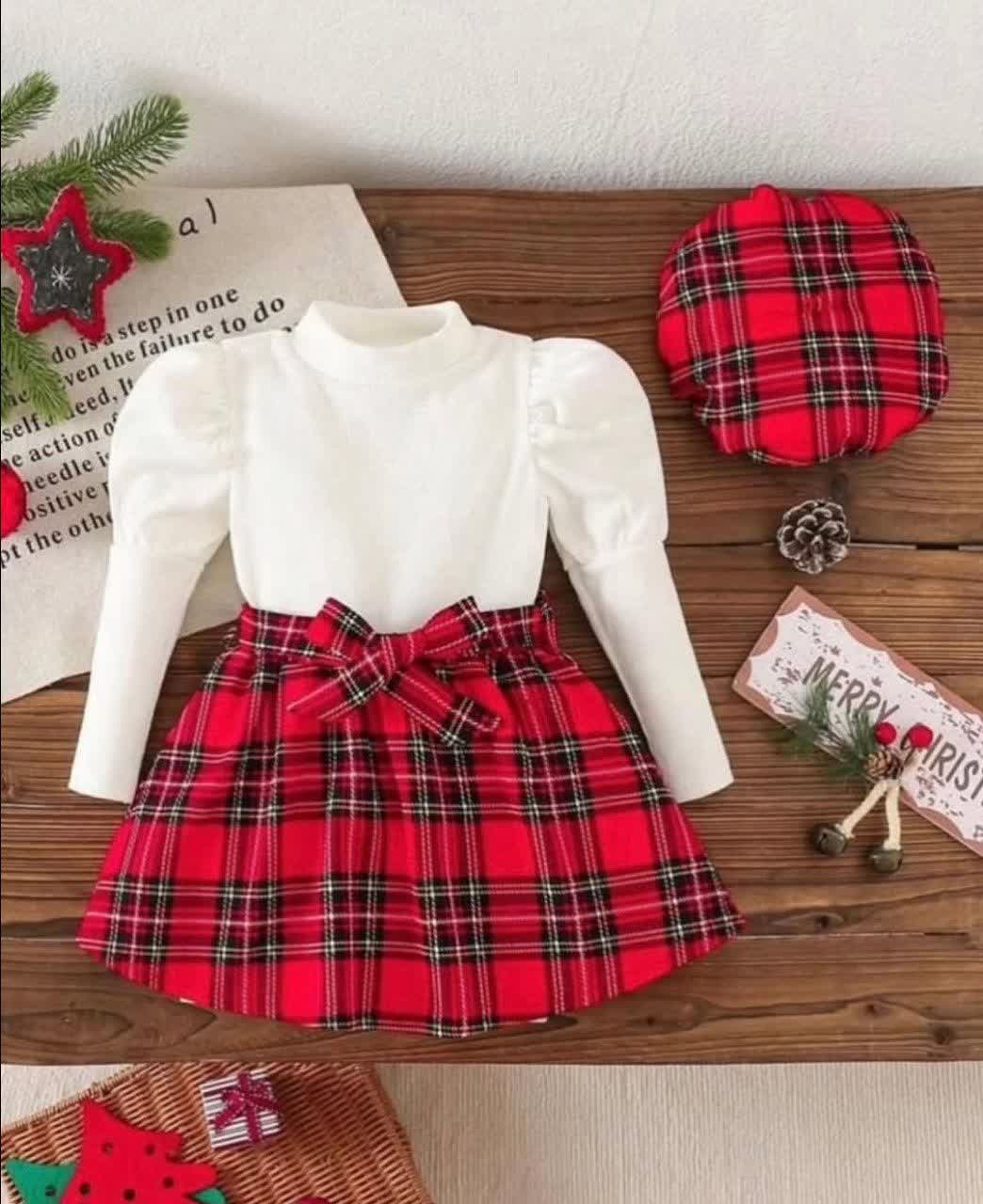 شومیز دامن چهارخونه همراه با کلاه فرانسوی چهار خونه